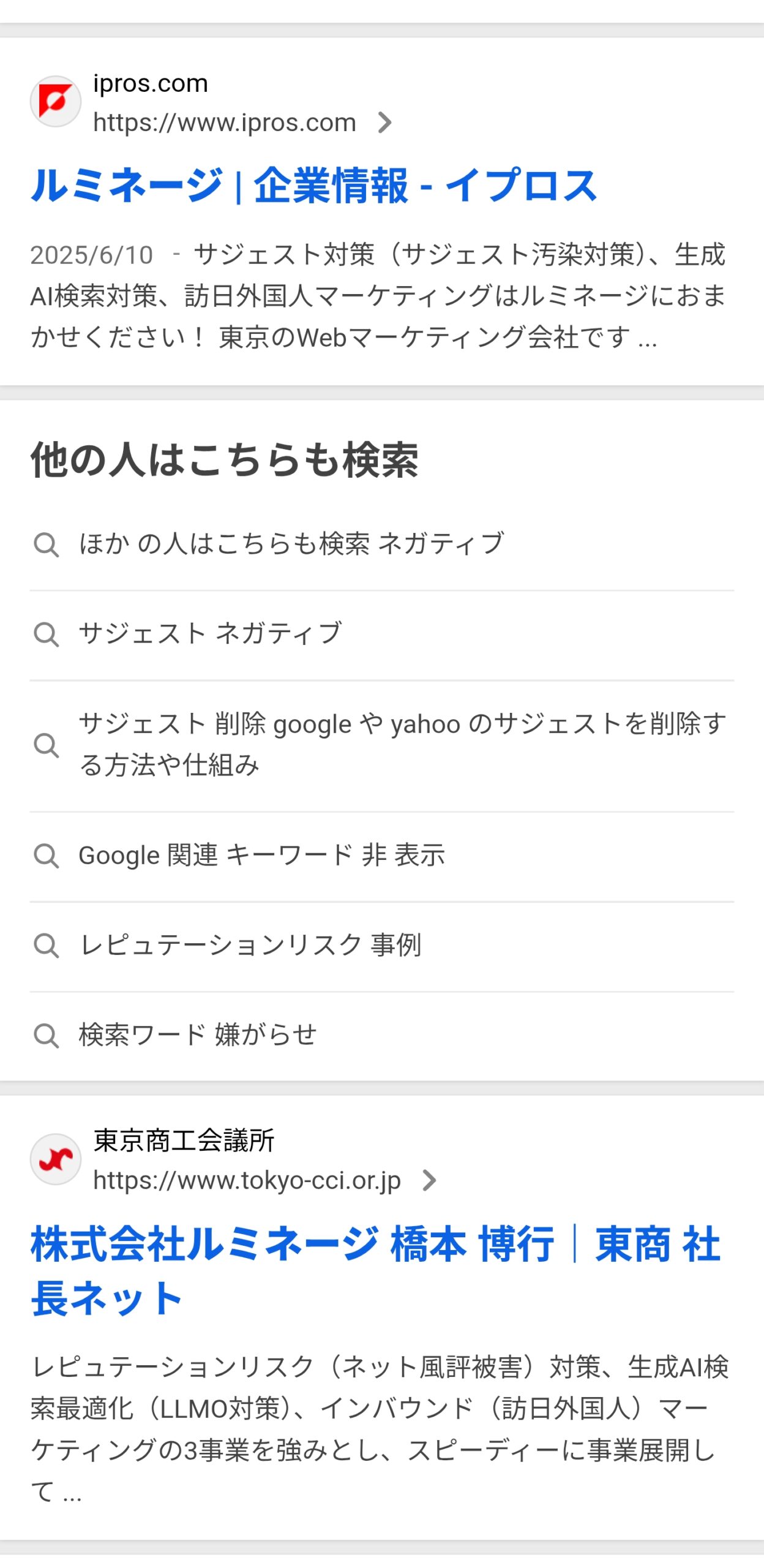 他の人はこちらも検索と併せて、サジェストキーワードにもネガティブなキーワードが表示されているケースも多いです。その場合、他の人はこちらも検索とサジェストと両方の対策を行う必要がございます。