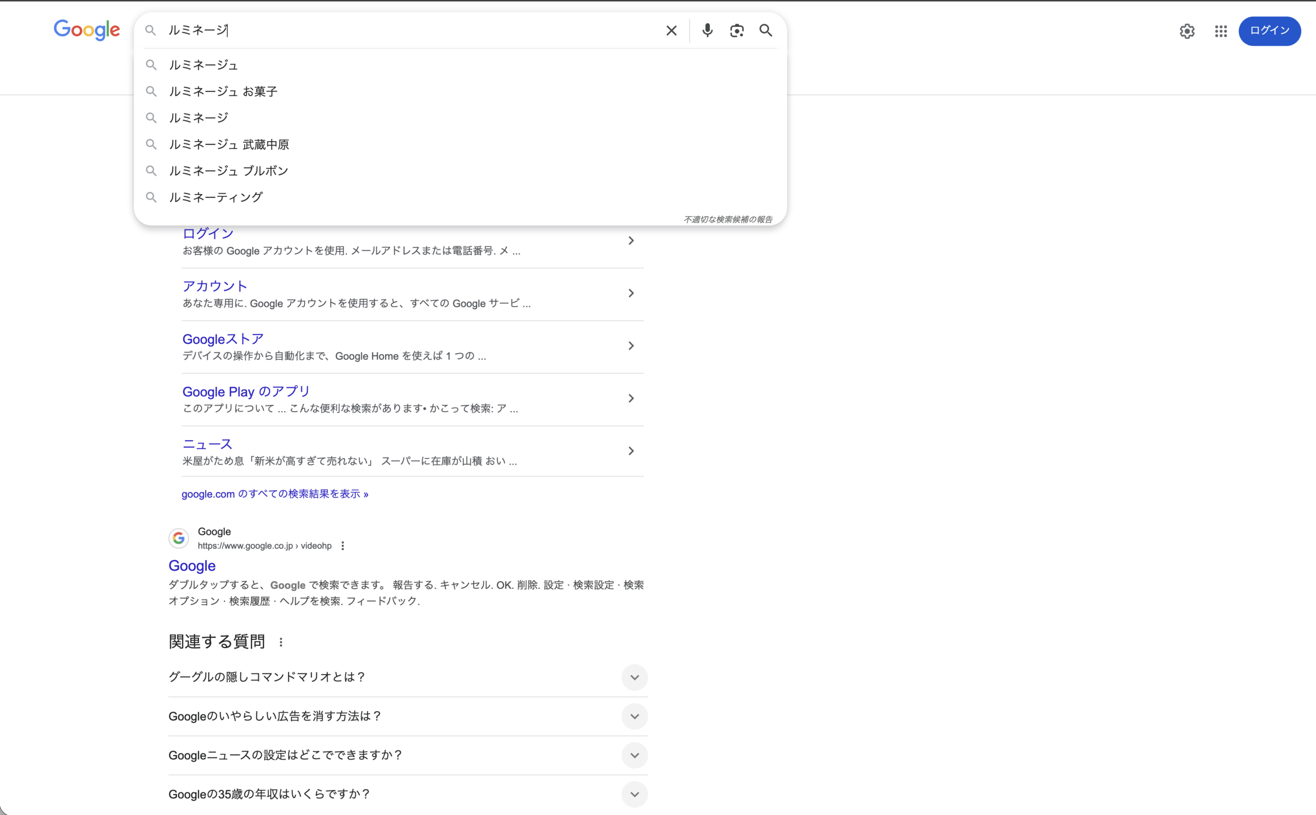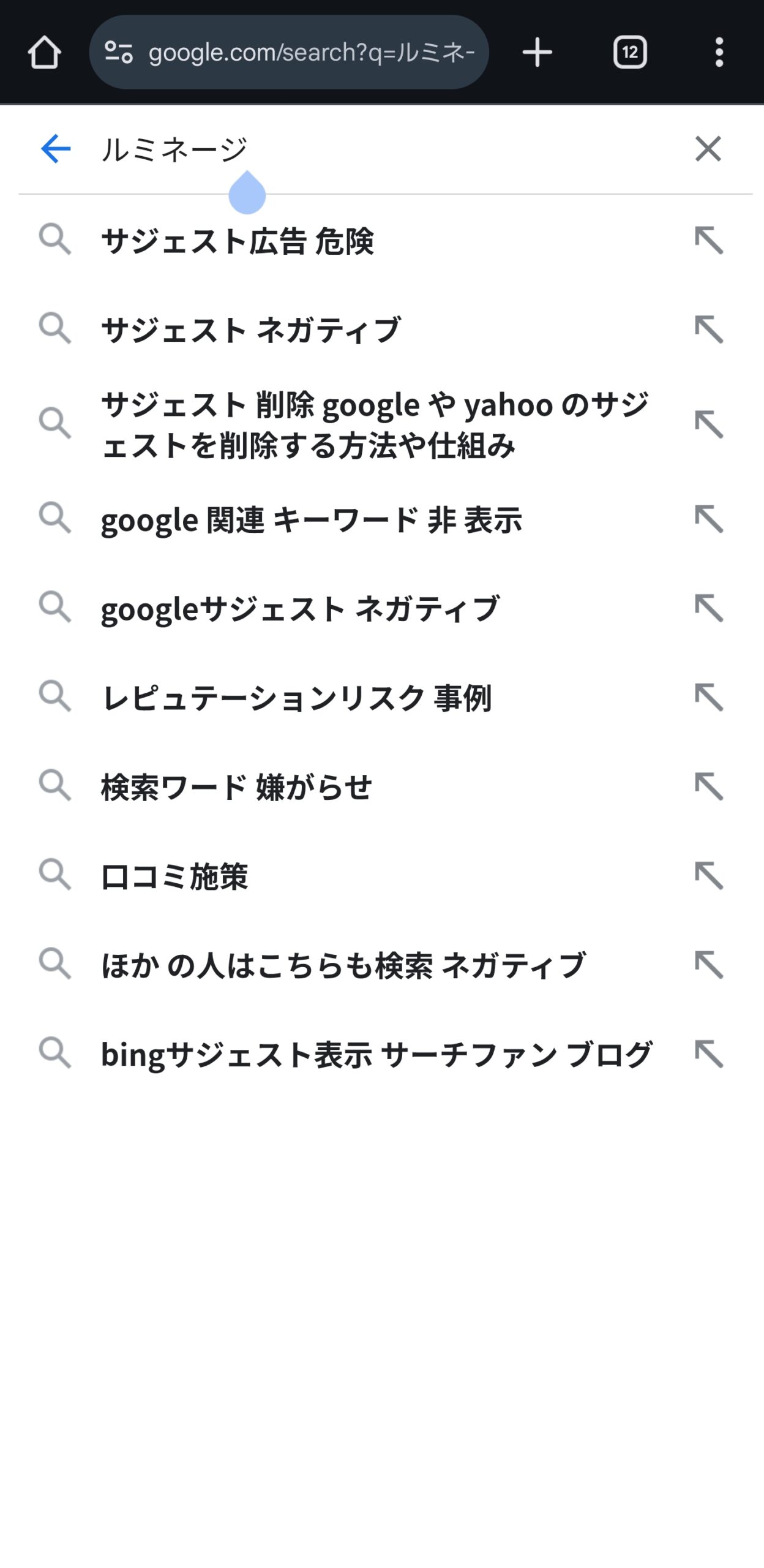 スマホでグーグルの検索ボックスに「ルミネージ」と入力すると